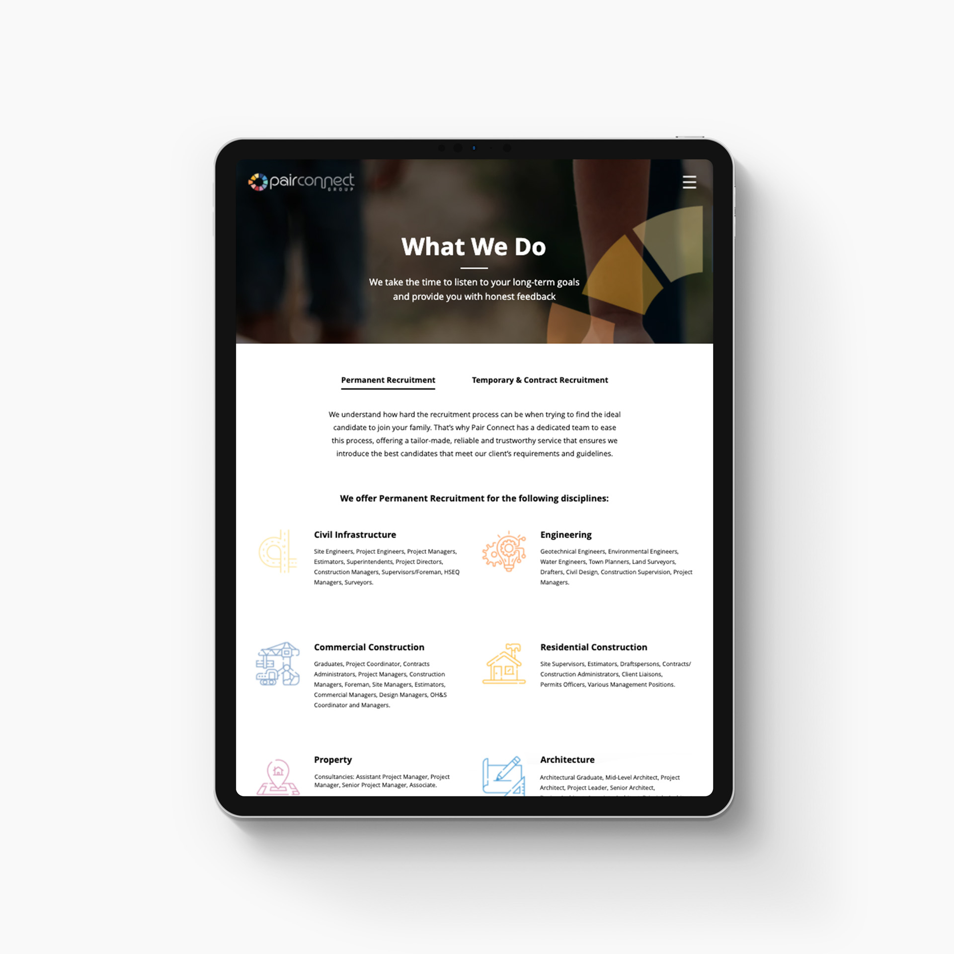 Pair Connect Group is a construction recruitment agency operating in Melbourne & Sydney. They offer permanent, contract and temporary staff solutions across a wide range of roles for the following disciplines: business support, civil infrastructure, engineering, property, architecture and more.