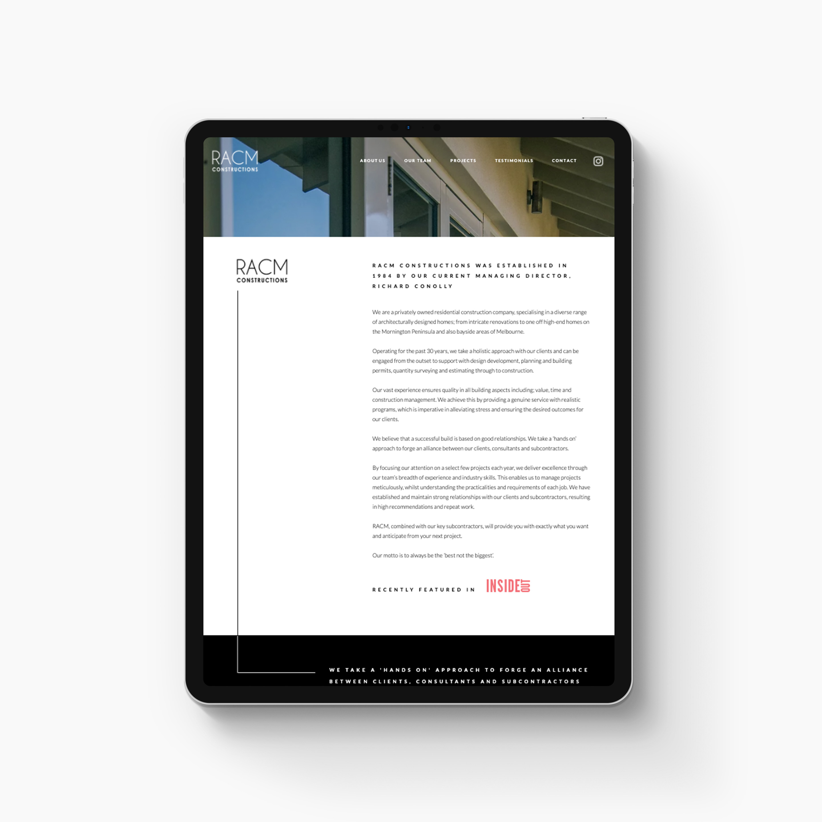 RACM Constructions was established in 1984 by current managing director Richard Conolly. They are a privately owned residential construction company specialising in a diverse range of architecturally designed homes on the Mornington Peninsula and Bayside regions of Melbourne, Victoria.